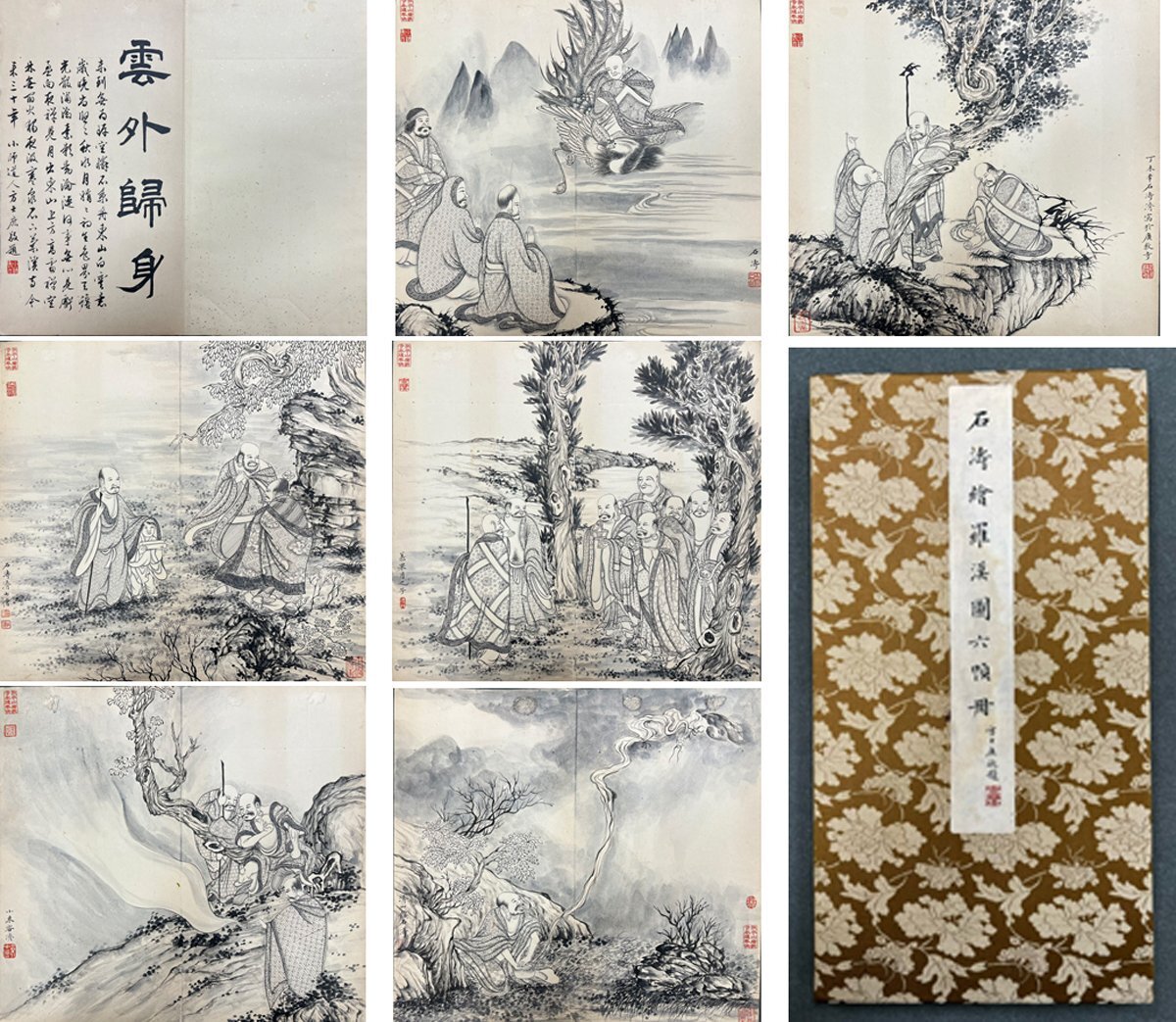 【安】中国清時代画家「石濤書」紙本「羅漢図冊頁 6開」短冊 中国画 墨寶妙品 中国書道 古美術 444 サイズ(約寸) |