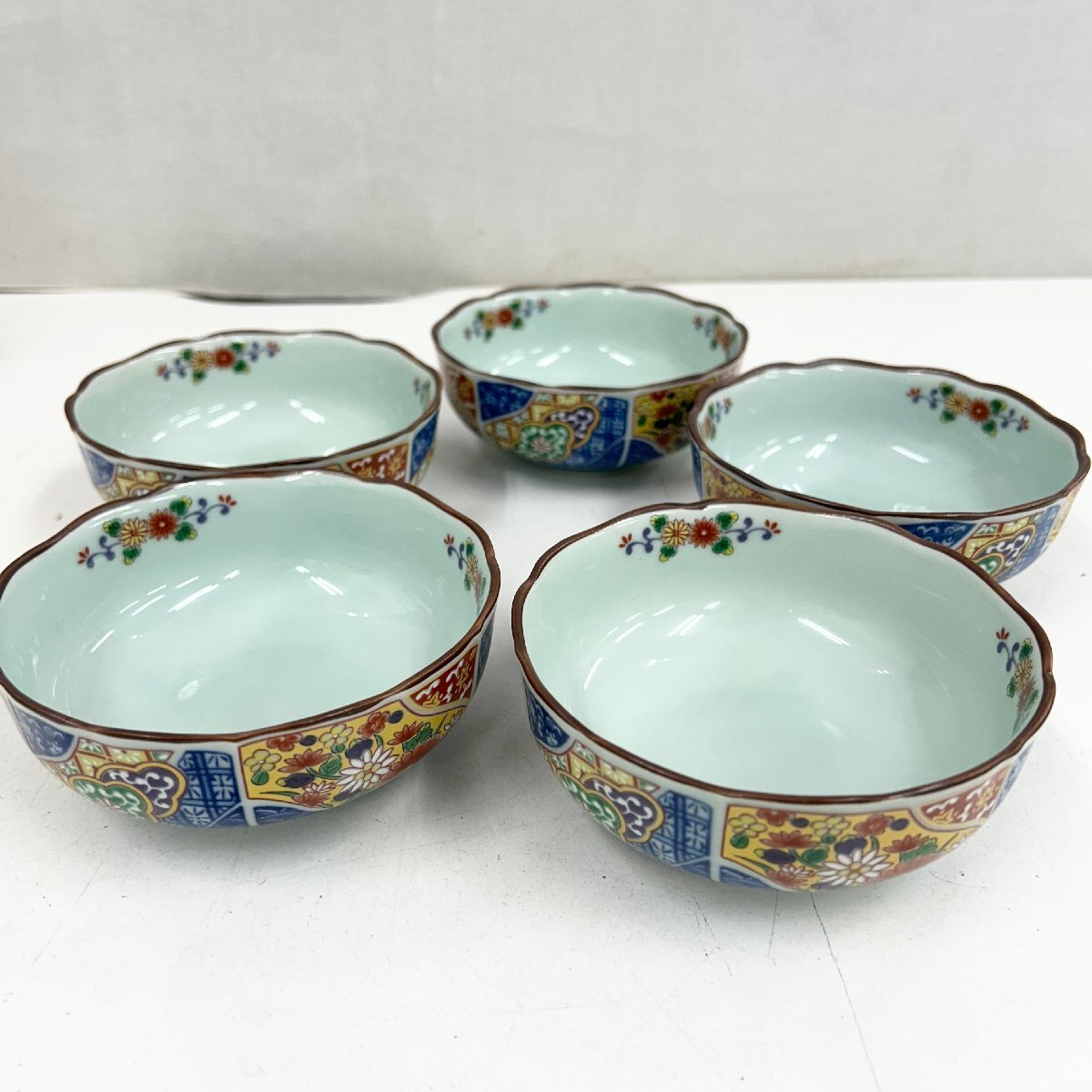 ◆有田焼◆友窯西作 夢彩磁器 染錦 小鉢揃 5客セット 陶器 木箱/冊子付 有田のうつわ インテリア キッチン 收藏