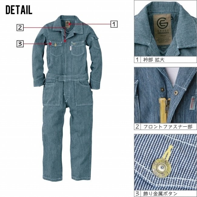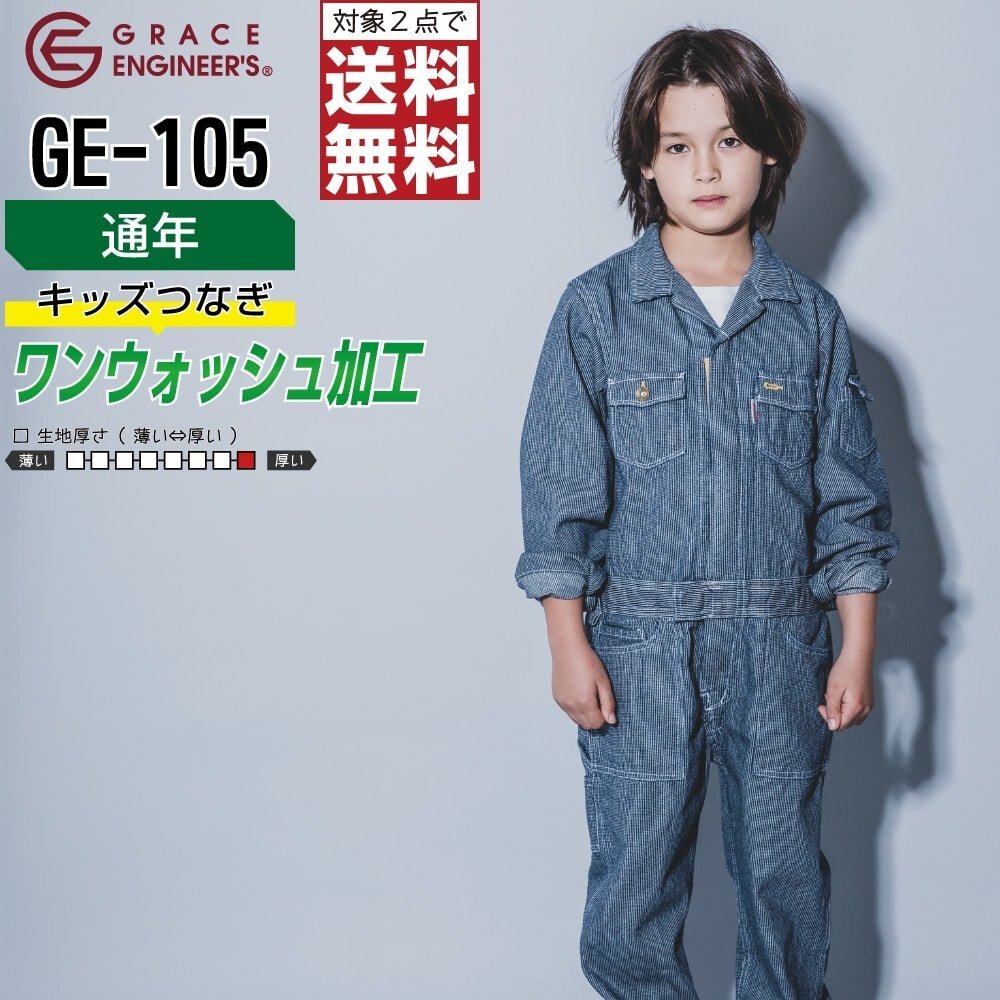 グレースエンジニアーズ キッズ 通年 長袖 つなぎ GE-105 綿100% 色:ヒッコリー サイズ:140 ★ 対象2点 送料無料 ★ 收藏