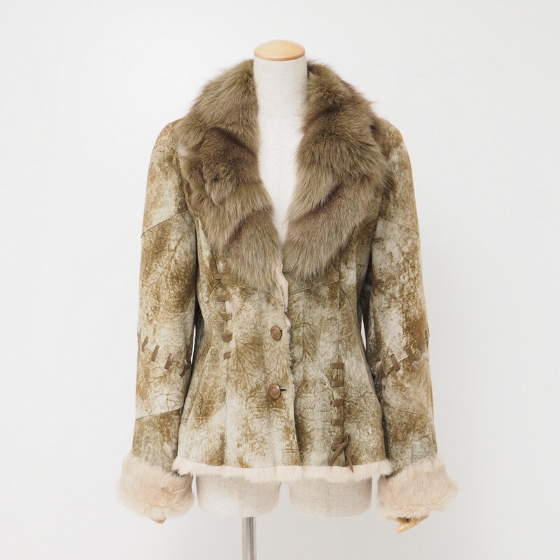 MI2168★ラビット 襟:ブルーフォックスファー レザージャケット ブラウン レディース M 編み上げ 收藏