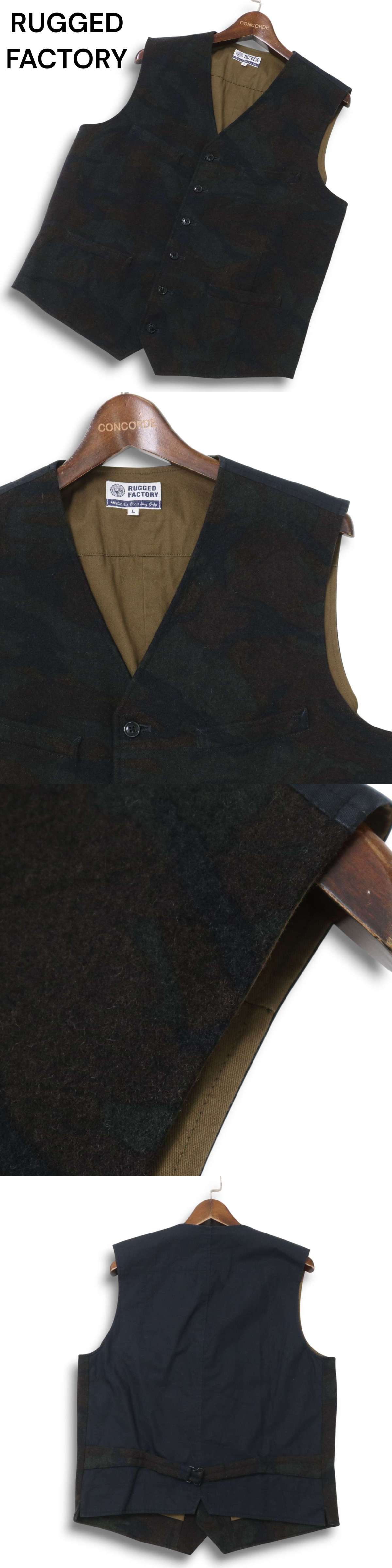 RUGGED FACTORY ラギッドファクトリー 秋冬 ウール★ カモフラ 迷彩 切替 ベスト ジレ Sz.L メンズ 收藏
