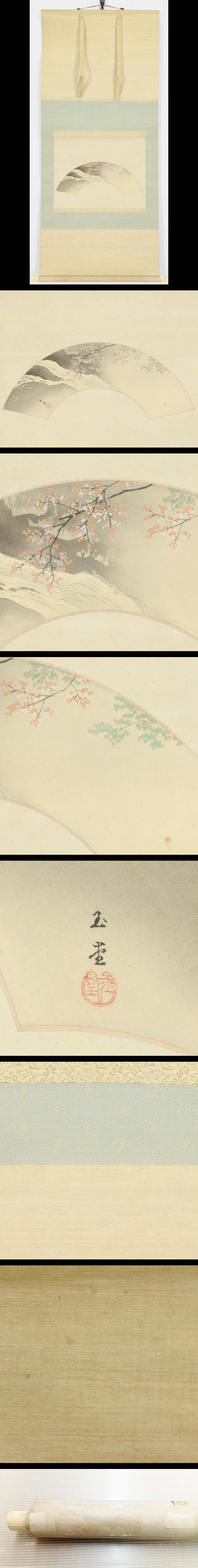 【WISH】川合玉堂「渓流」工芸画 手彩色 掛軸 扇面絹本 清流に映る花の詩 〇帝室技芸員 日本芸術院会員 文化功労者 #25090105 收藏