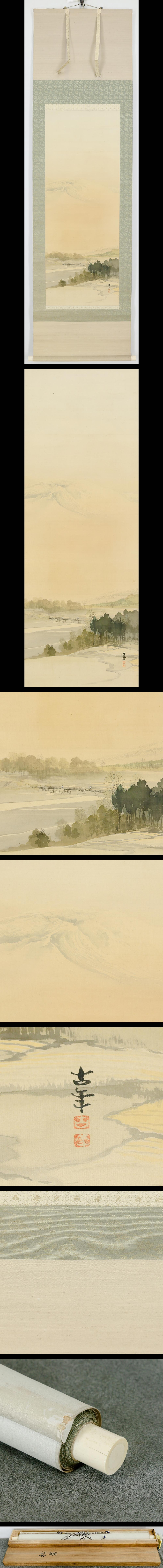 【真作】【WISH】上原古年「秋景」日本画 掛軸 絹本 共箱 山霞む秋の朝、心澄む風景 〇師:松本楓湖 共進会一等褒状 #25100011 收藏