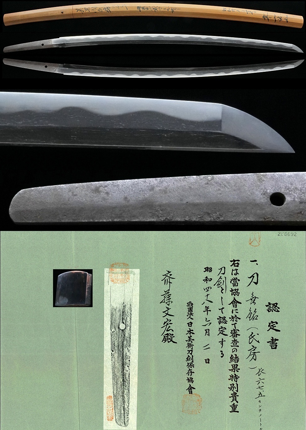 売り切り 無銘(美濃国若狭守氏房)寒山先生鞘書 67.5㎝ 元幅3.05㎝ ゴリゴリの健全刀 上白鞘入 特別貴重刀剣認定書附 收藏