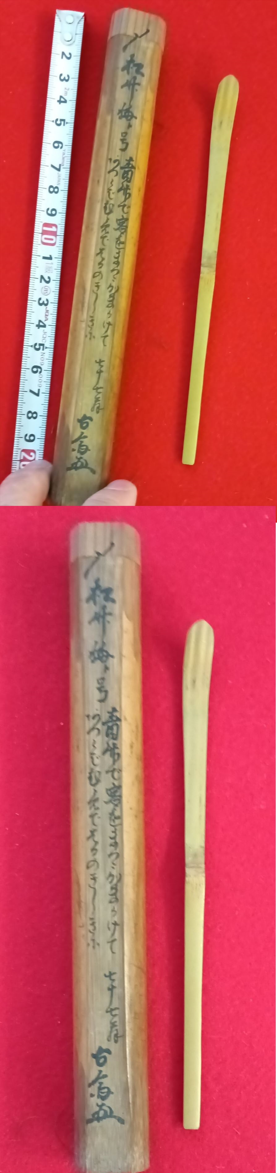 茶杓 古斎銘 七十七翁作 共筒
