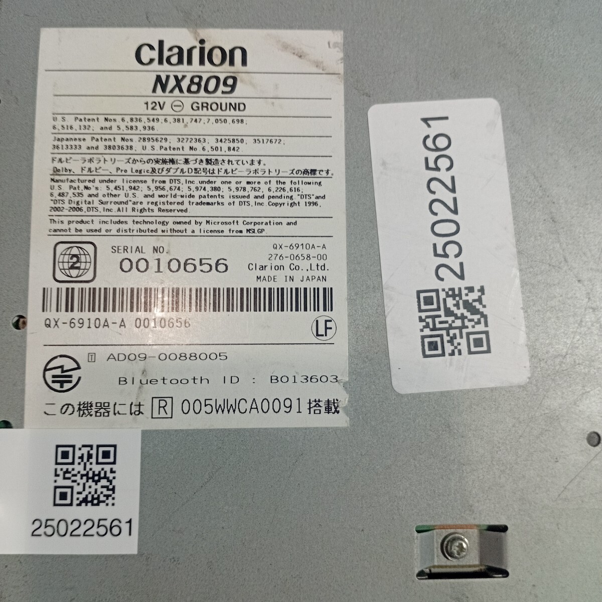本体シリアルNo [ QX-6910A-A 0010656 ]