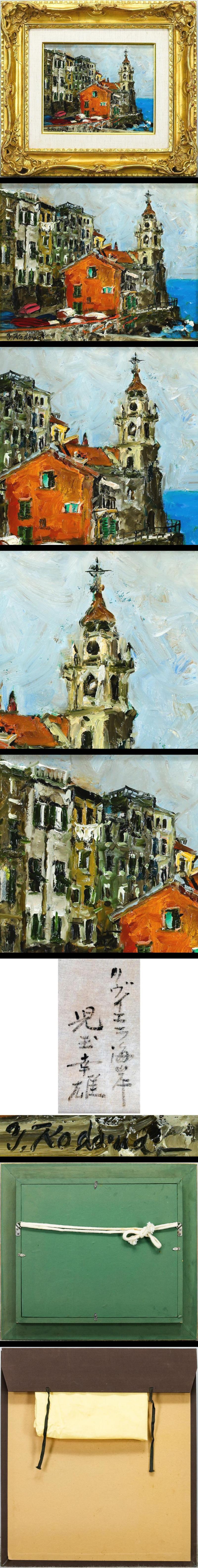 【真作】【WISH】児玉幸雄「リヴィエラ海岸」油彩 3号 ◆イタリア地中海・教会のある海辺の街名画 〇パリ風景巨匠 #25122860 收藏