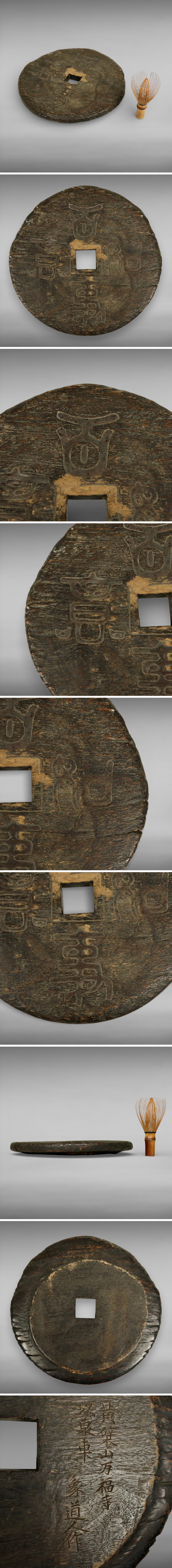 江戸期 黄檗山萬福寺 古材 象道人作彫 古木 古銭 泉車 滑車板 置物 隠元和尚 仏教美術 オブジェ 古美術 骨董品 122608vqN 收藏