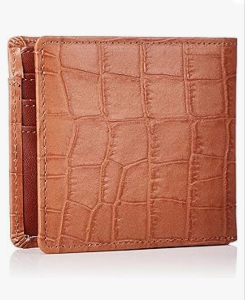 送料無料! キャメル 財布 クロコ 型押し カードスライダー ボックス小銭入れ 二つ折り財布 ボックス小銭入れ 札入れ 軽量 カードケース 收藏