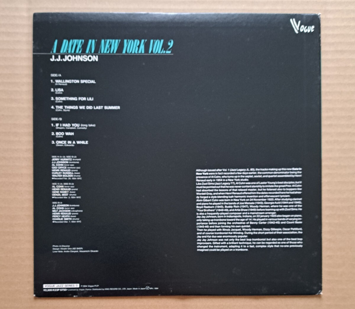 国内盤LP◎J.J.ジョンソン『ア・デイト・イン・ニューヨーク Vol.2』K23P-6750 Vogue キング J.J.Johnson A Date In New York Vol.2 64891J 收藏
