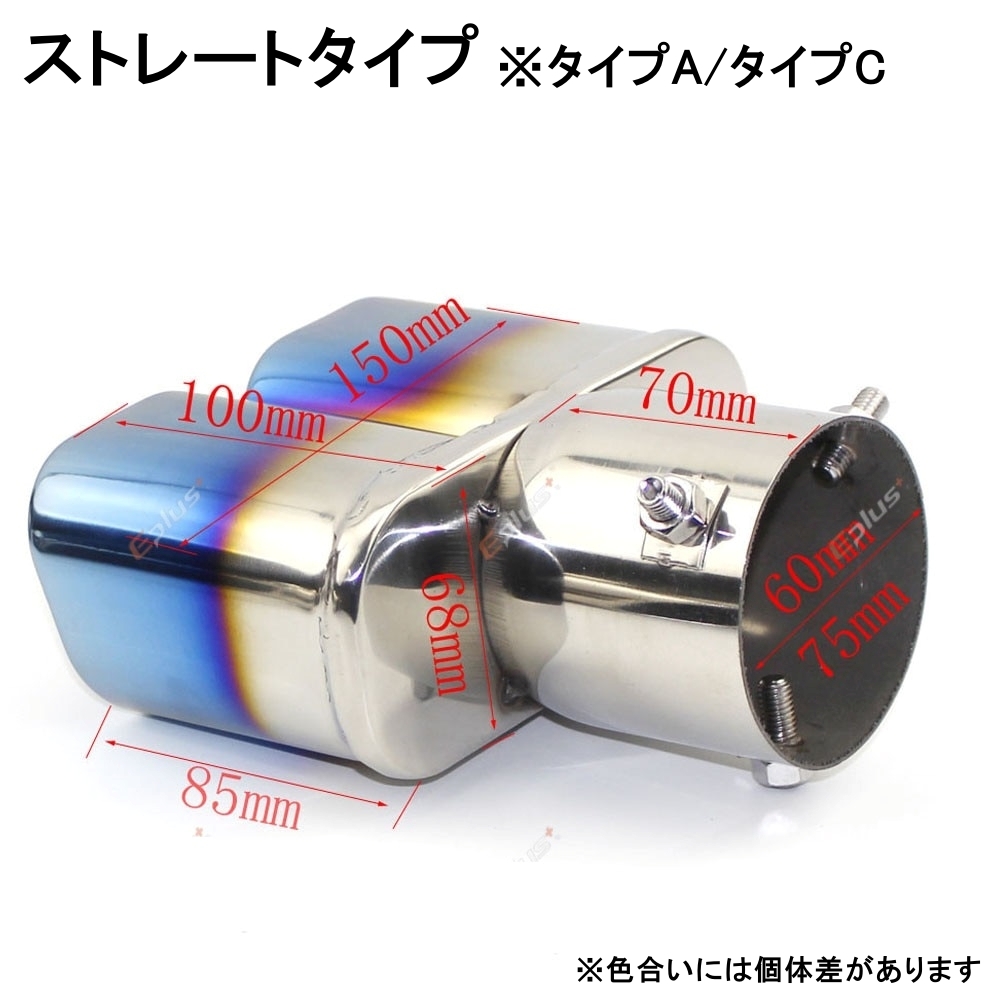 | 商品内容 汎用マフラーカッター 特徴 ・装着可能マフラー外径(60mmタイプ):38mm~58mm ・装着可能マフラー外径(75mmタイプ):53mm~73mm ・数量:1個(※両サイドマフラーの場合は2点お買い求めください) ・出口数:2(デュアルタイプ) ・出口形状:スクエアタイプ ・材質:全タイプステンレス製になります ・選べる8タイプ(商品画像参照):タイプA/タイプB/タイプC/タイプD ※各タイプに60mmタイプ/75mmタイプがあります ※タイプA/タイプBは色合いに個体差があります 適合確認 ※タイトルにある車種は参考車種になります。 ※タイトルにある車種でも排気量やグレードによって マフラーの外径やリアバンパーの形状が異なります。 必ずマフラーの外径とリアバンパー形状 及び商品の寸法をご確認ください。 取付に関する注意事項 ・専門業者様による取付を推奨しております。 ・火傷防止のためマフラーが冷えた状態で作業してください。 ・脱落防止のため定期的に増し締めしてください。 ・取付、使用に関わるケガ、事故等につきまして 弊社は一切の責任を負いかねます。 |