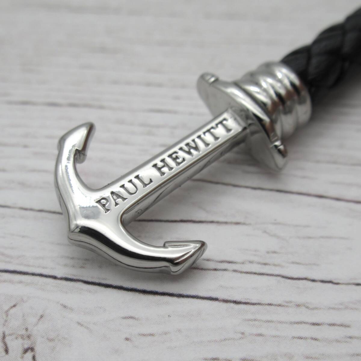【新品未使用】Paul Hewitt ポールヒューイット Lサイズ ブラックシルバー アンカー ブレスレット レザー 革 ステンレス 錨 アクセサリー 收藏