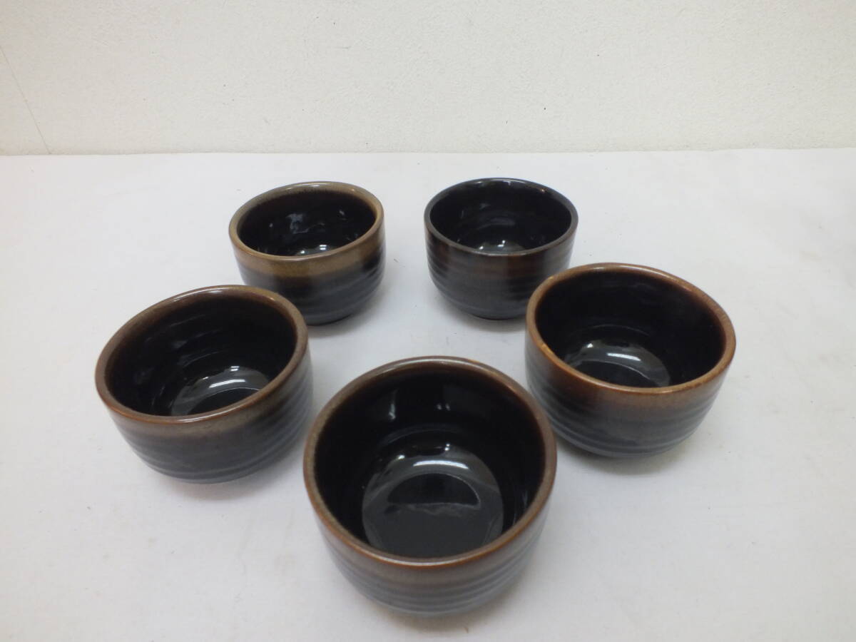 ★激シブ 未使用 【天目・おもてなし茶器セット】急須・湯呑み・茶葉網付 5客セット 内海産業株式会社★(5709) 收藏