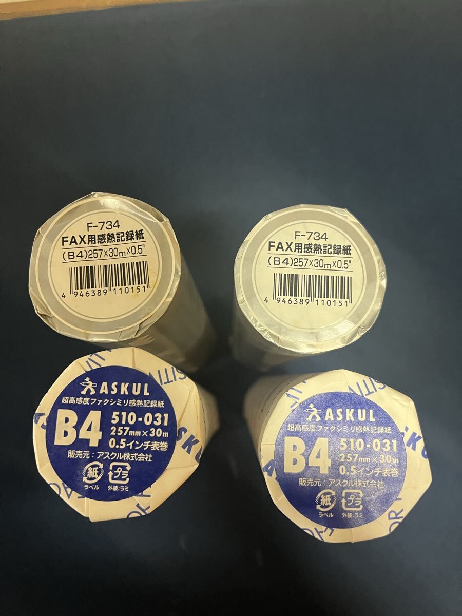 未使用品 ファクシミリ 感熱用紙 B4 30m 4本 FAX用紙 長期自宅保存 收藏