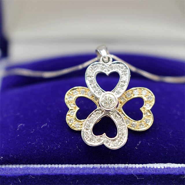 K18 K18WG ネックレス ダイヤネックレス メレダイヤ入りハート型ペンダント付 D0.47ct 4.7g |