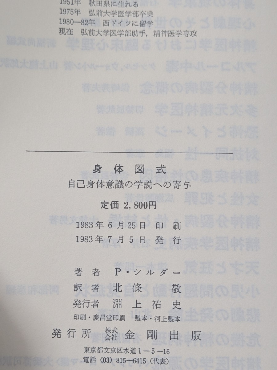【初版】身体図式 自己身体意識の学説への寄与 P・シルダー 金剛出版 翻訳書 精神分析 知覚 收藏