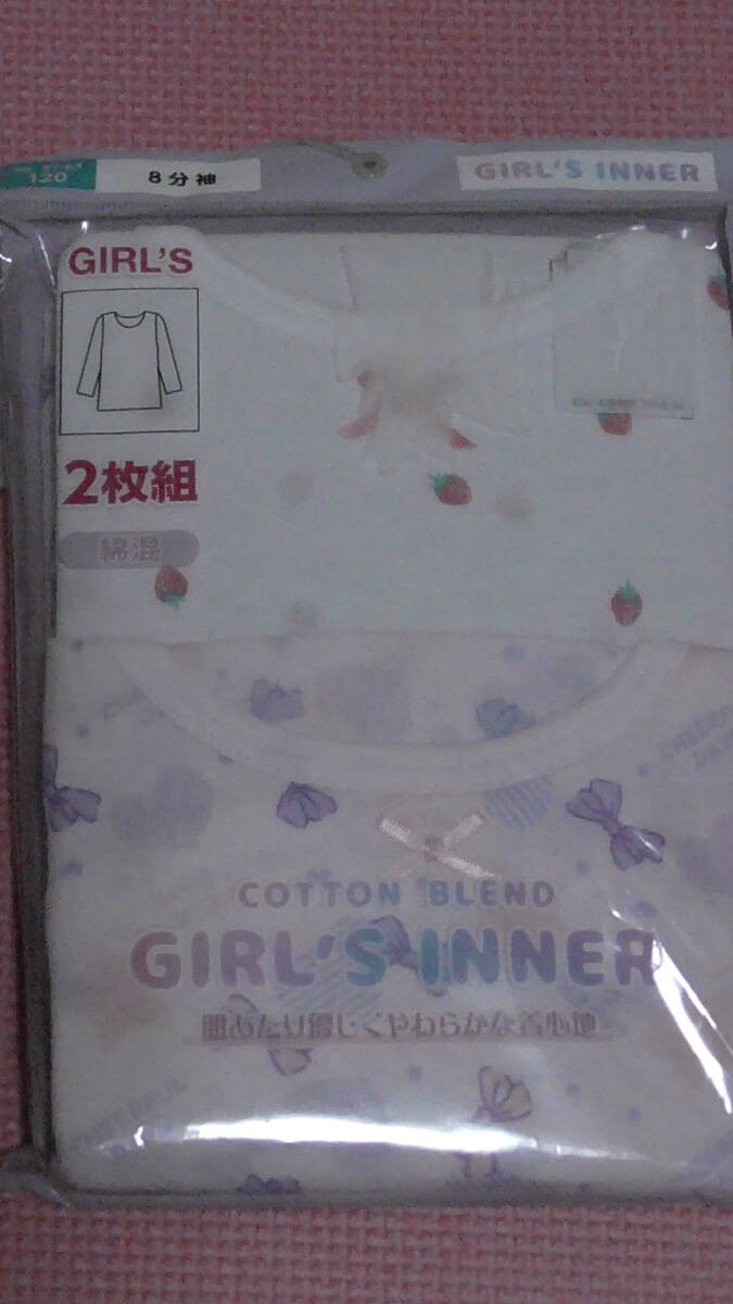 新品 120 長袖シャツ 2枚組 綿混 白 ピンク 8分袖 女の子 長袖Tシャツやトレーナーの下に着る 下着 冬物 肌着 2枚セット 110~ 送料無料 收藏