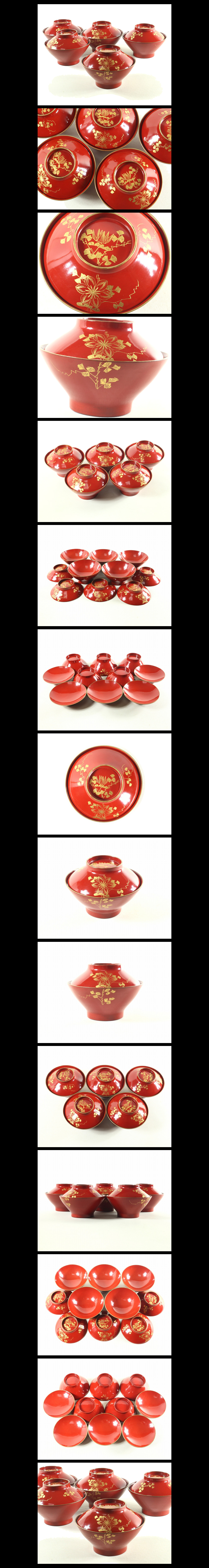 ●c089●極上【輪島塗沈金吸物椀5客 花唐草図朱金縁布着堅地 明治期】検お茶会煎茶道具茶懐石蒔絵●西瓜●