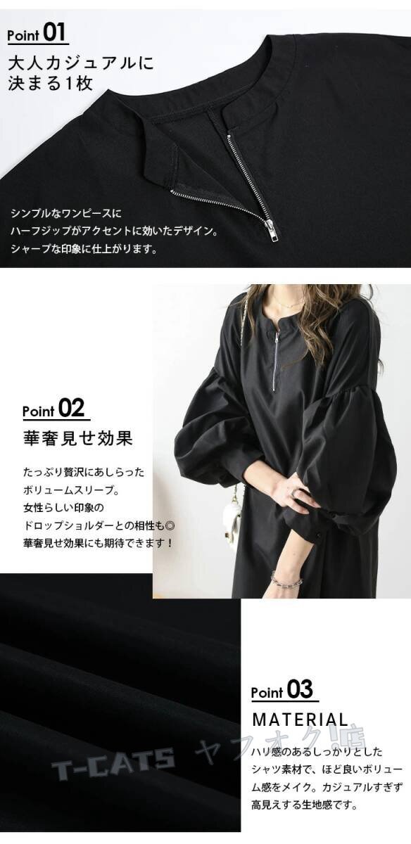 ☆新品 大人可愛い フリル袖ワンピース レディース 五分袖 ロング丈で体型カバー抜群 カ ジュアル 通勤 薄手 黑 收藏