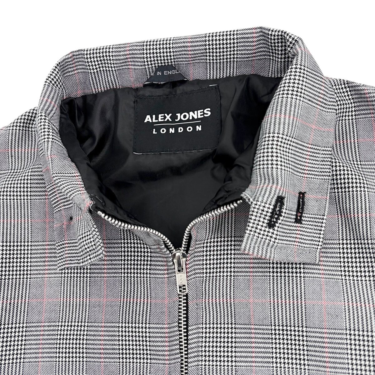 英国製 ALEX JONES アレックスジョーンズ グレンチェック柄 スイングトップ ハリントン ジャケット ブルゾン 裏地付 S グレー ユニセックス 收藏