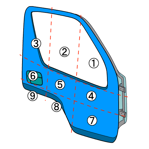 | 部品名 | 右フロントドア | 部品メーカー品番 | M213 | メーカー代替品番 | |