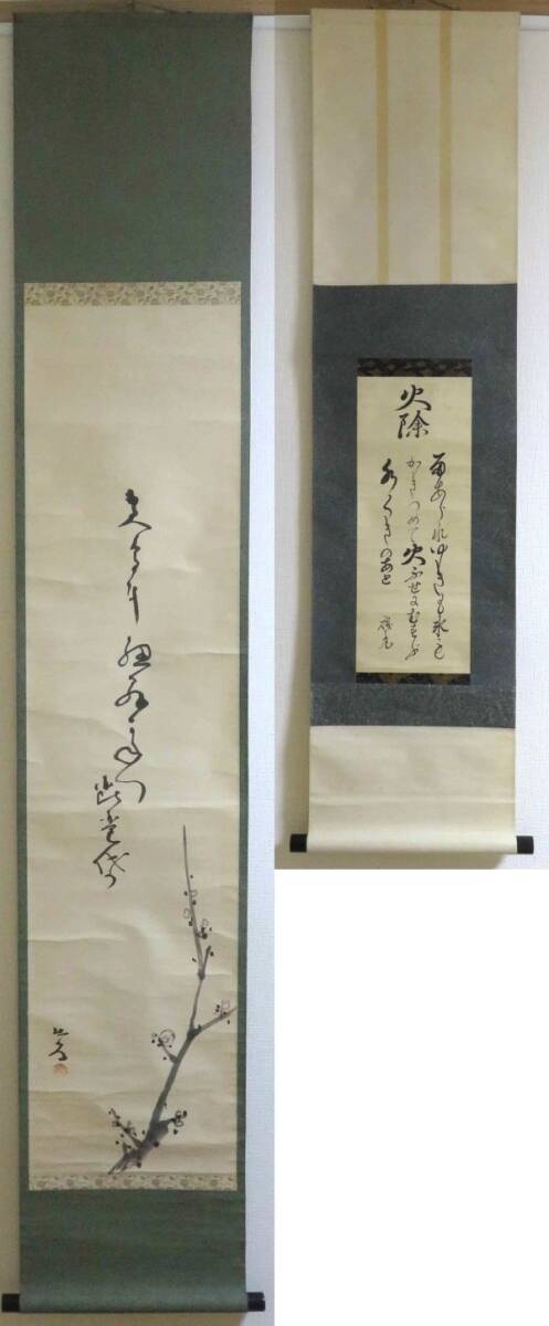 真作 富永杜発 俳人 『梅画賛』 糟谷磯丸 歌人 『火除之歌』 2点 紙本 肉筆 共箱 合箱 掛軸 愛知 收藏