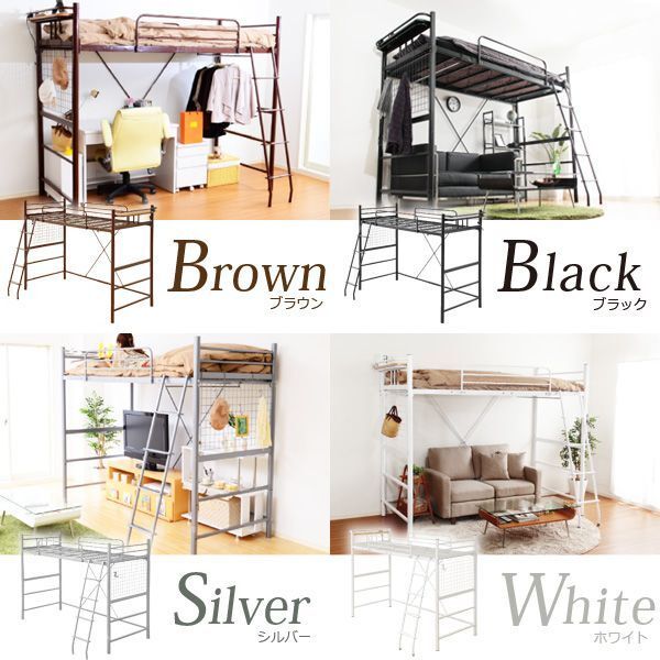 ロフトベッド★高さ調整可能!宮棚・コンセント付きロフトベッド【オーキス】/黒 茶 銀 白/zz 收藏