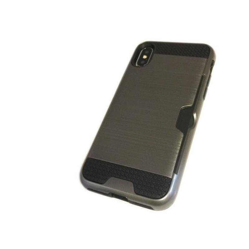 iPhone XS Max カードいれ シンプル 無地 二重構造 ハード アイフォン アイホン XS マックス ケース カバー ダークグレー 深灰色 收藏
