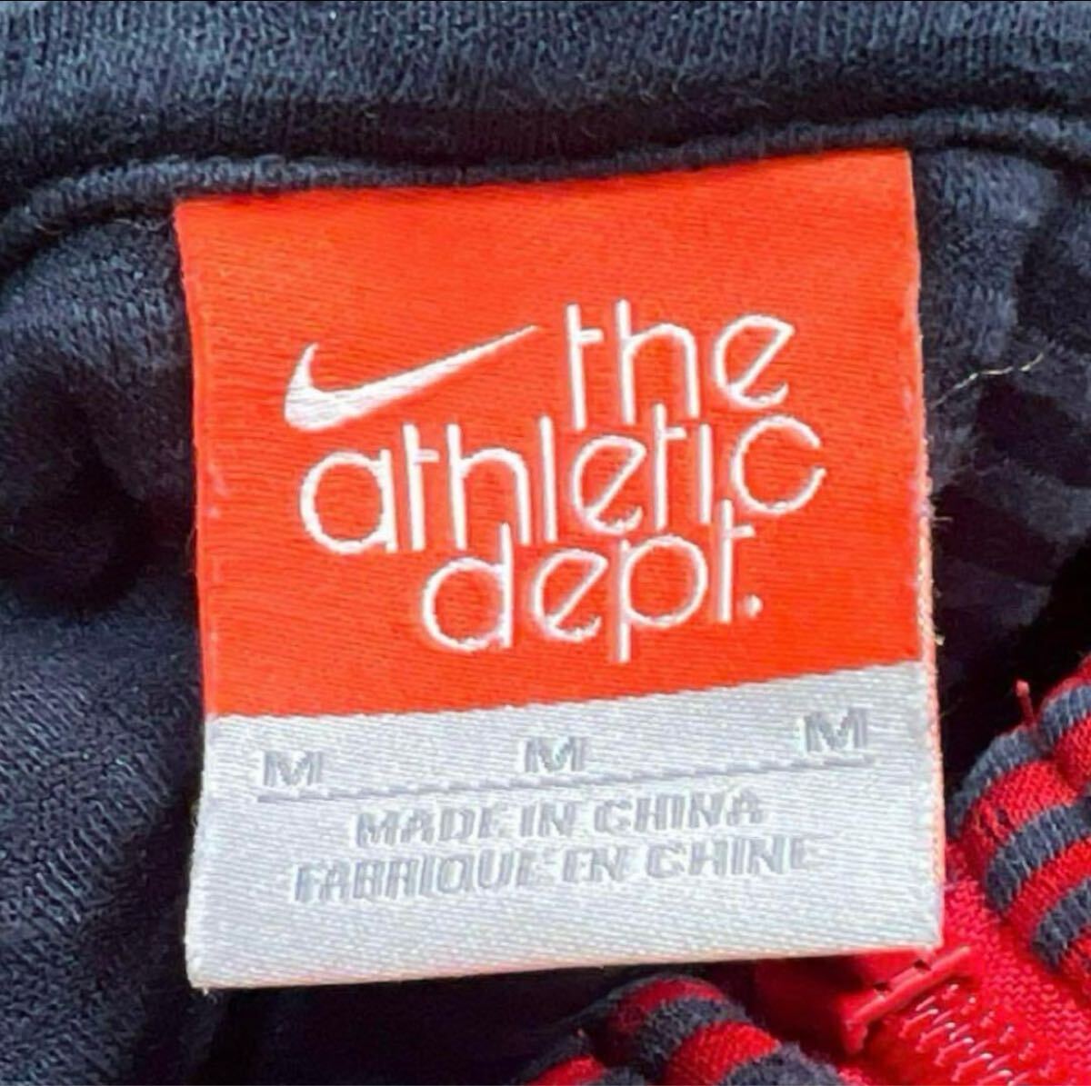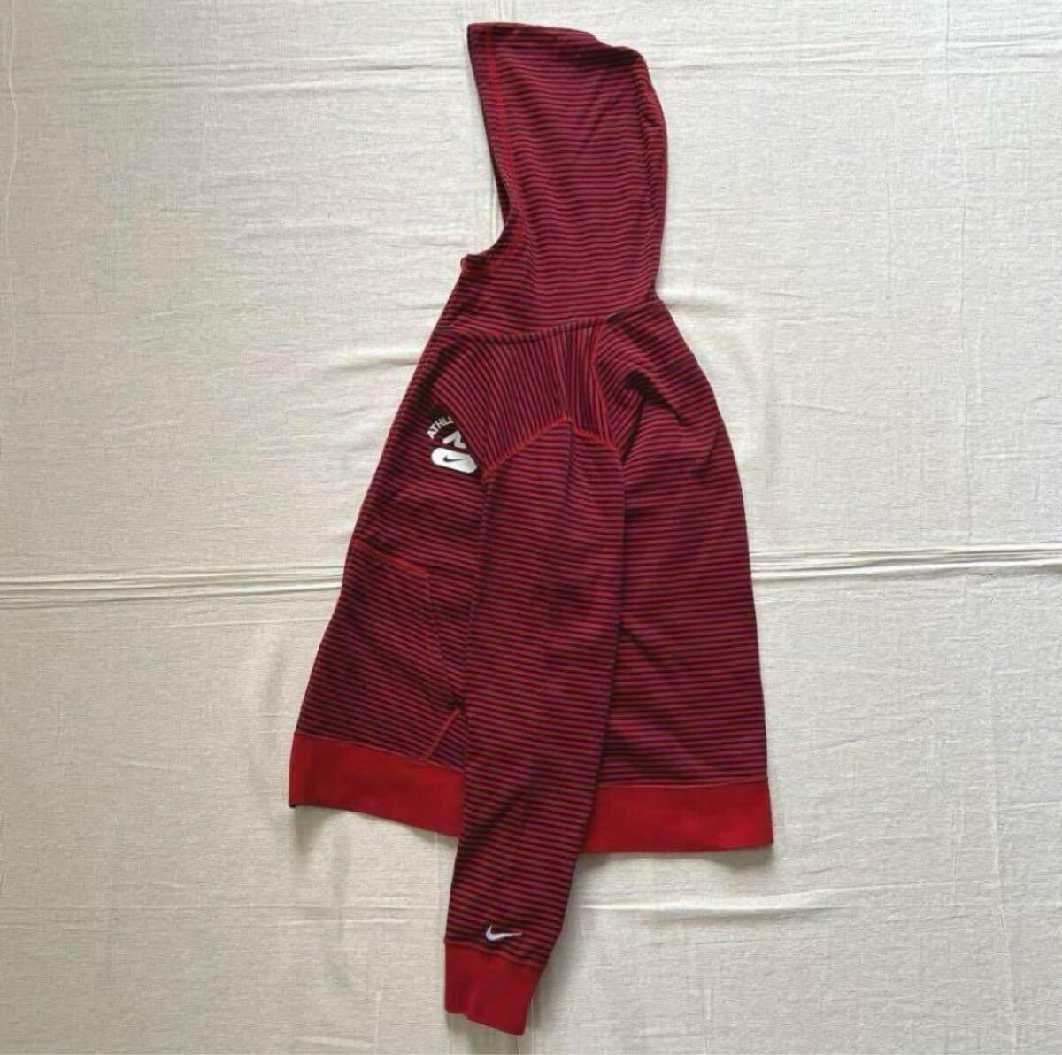 Y2K archive NIKE ナイキ 忍者型フード 細ボーダー柄 ジップアップパーカー 薄手 ワンポイントロゴ 平成ギャル レッド M 收藏