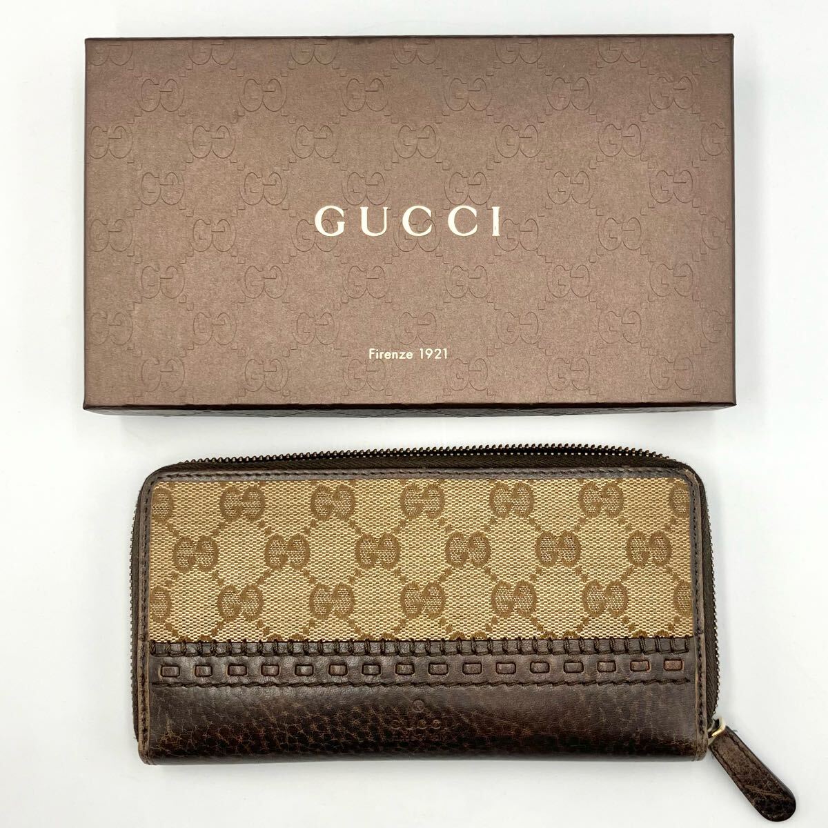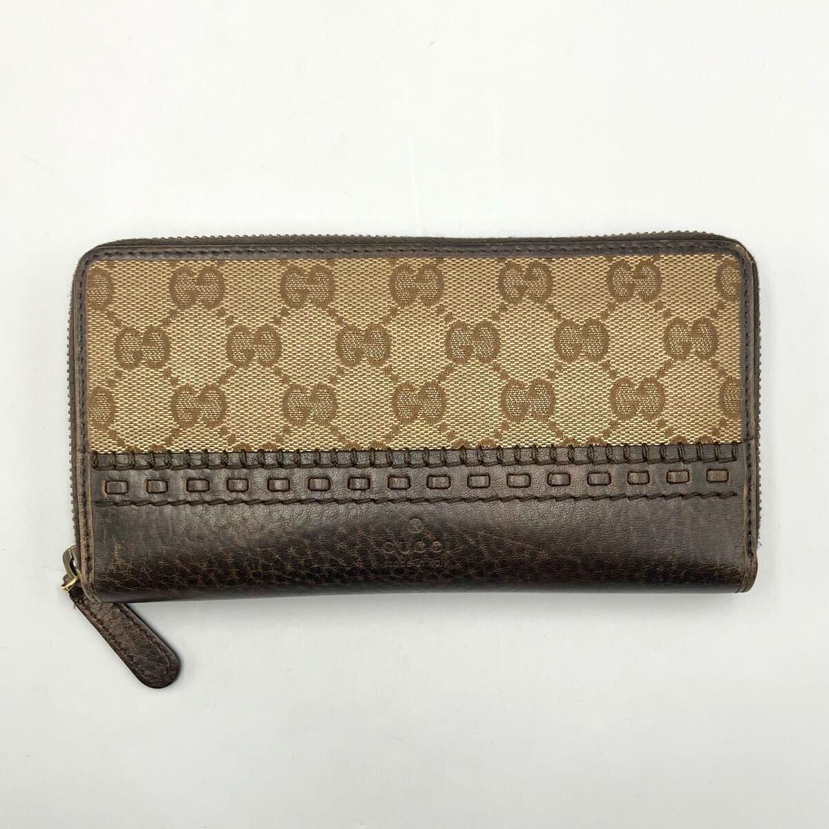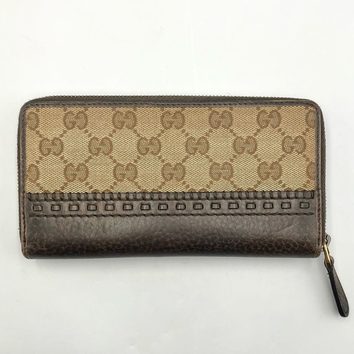 ☆ GUCCI GGキャンバス ラウンドファスナー 長財布 グッチ 財布 ウォレット キャンバス レザー ブラウン 箱あり モノトク 收藏