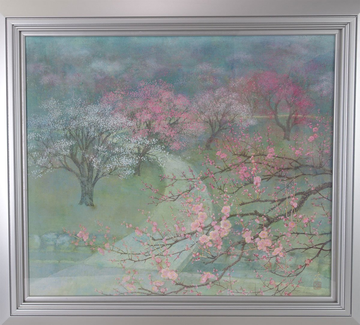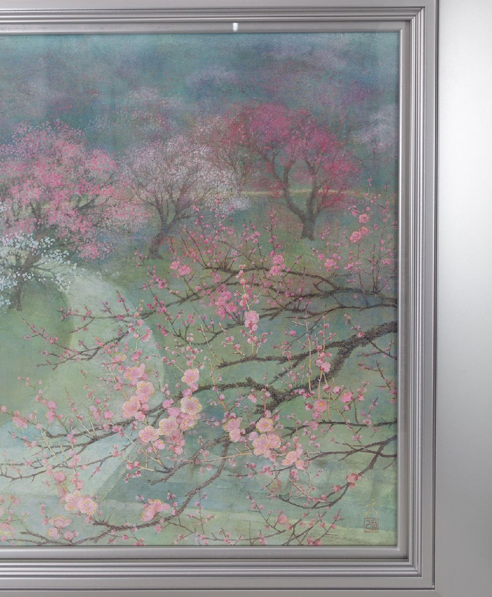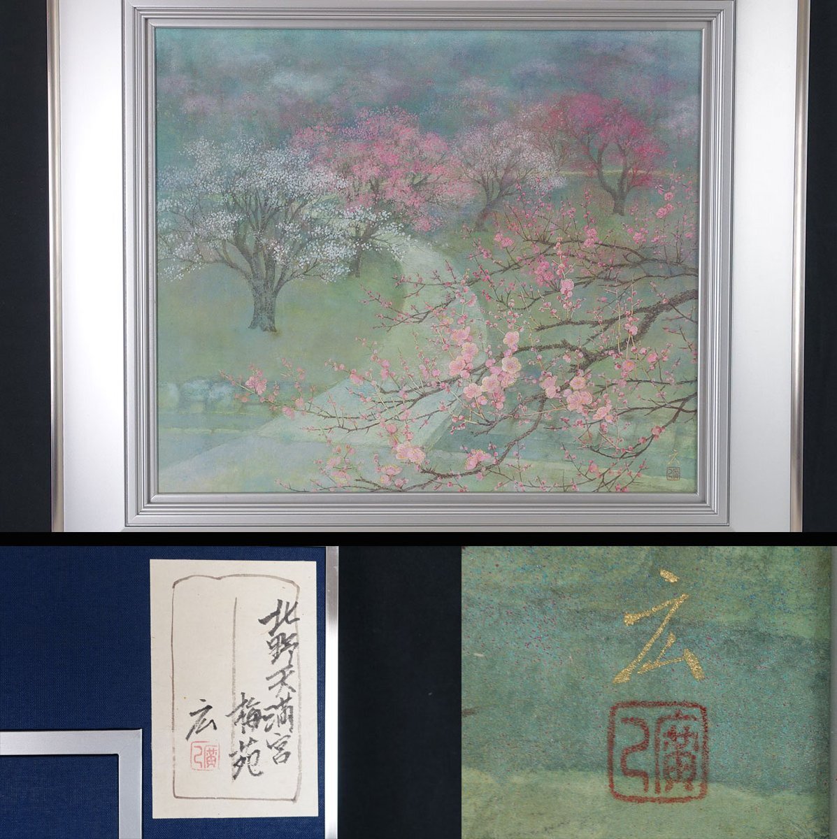 【真作】 蔵壷◆『内田広巳 北野天満宮 梅苑』 1額 共シール 絵寸:65cm×72.5cm 日本画 風景画 佐賀県出身 收藏