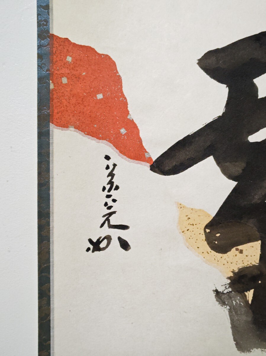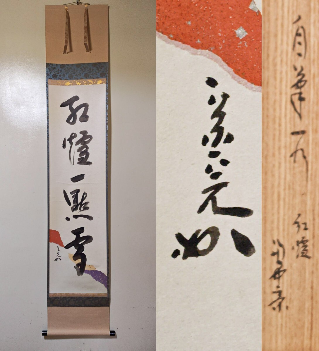 ≪茶掛≫ 表千家【堀内宗完 (兼中斎)】 自筆一行書 『紅炉一點雪』 懐紙(継料紙) 桐共箱 真筆保証 掛軸 收藏