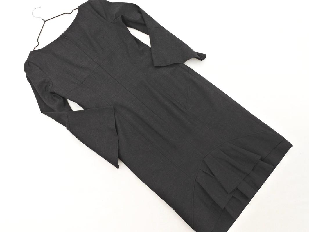 Pinky&Dianne ピンキー&ダイアン ウール混 バックフリル ベルスリーブ ワンピース size36/チャコール ◇■ ☆ fjc7 レディース 收藏
