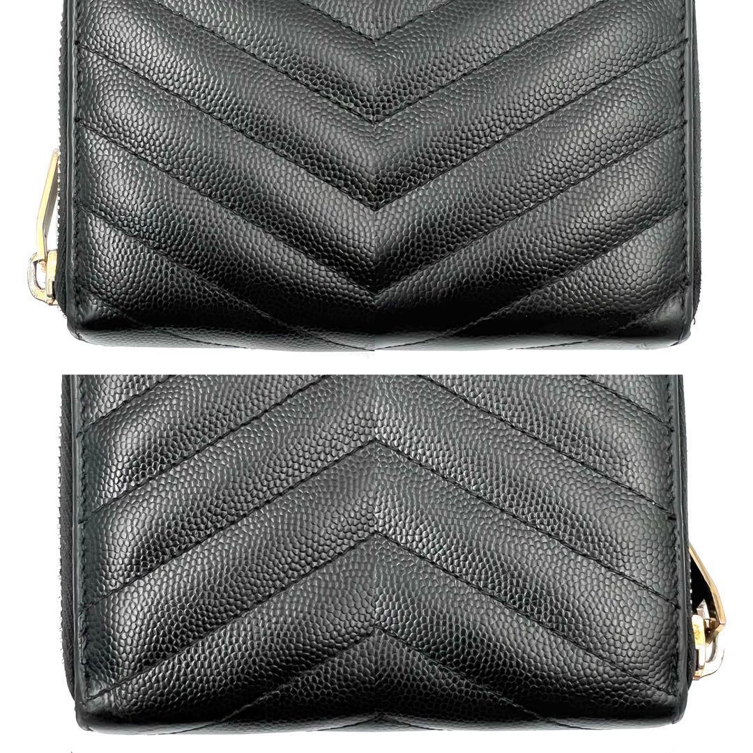 《美品》SAINT LAURENT PARIS サンローランパリ カサンドラ Vステッチ レザー ラウンドファスナー 長財布 ゴールド金具 收藏