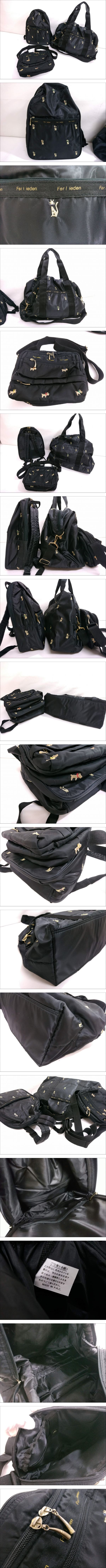 【未使用品含む】Ferlieden フェアリーデン ナイロン バッグ 合計3点セット/ネコ刺繍/イヌ刺繍/ブラック/バックパック/ボストン/LHQ84-10 收藏