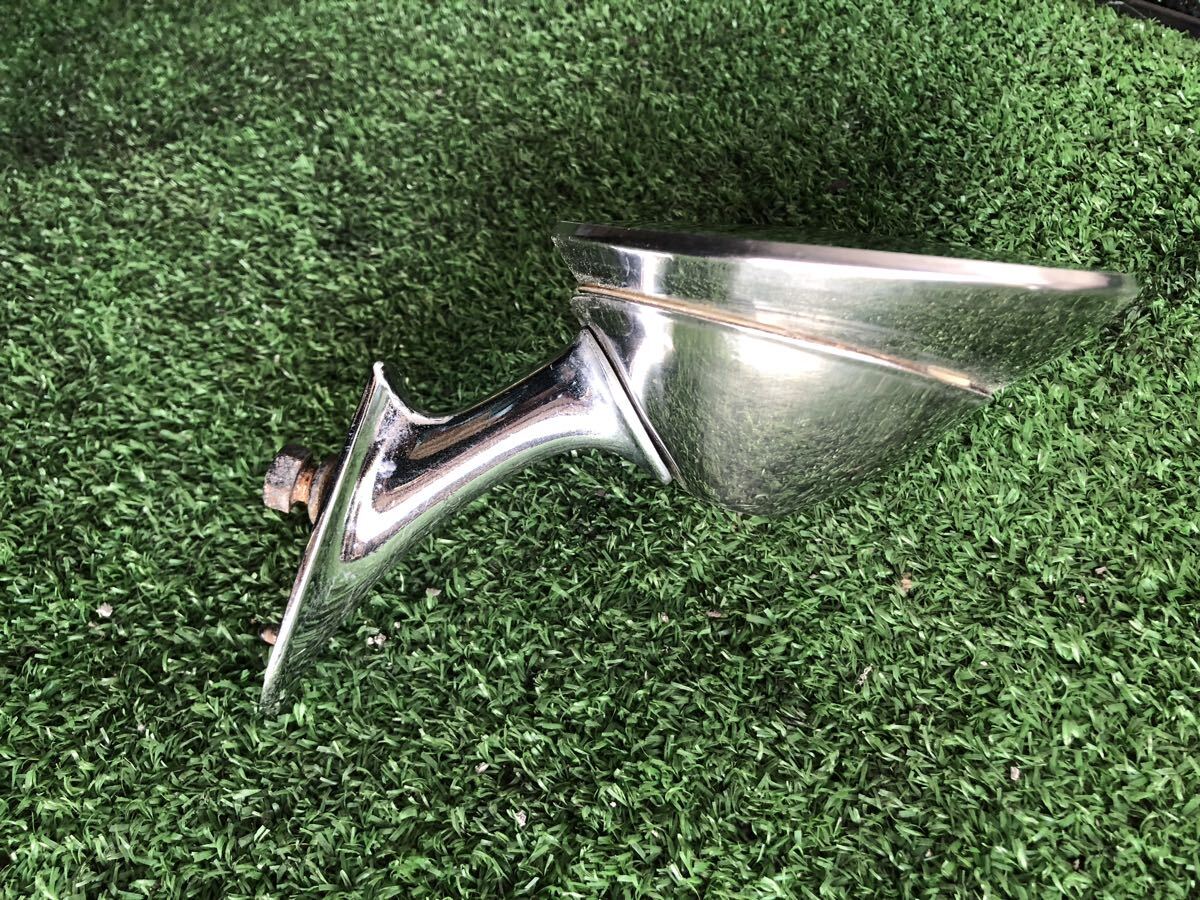 ミラー フェンダー? 車種不明 左右不明(左?) 1点 11cmφ 奥行10.5(ミラー5.5)cm ミラー傷あり 一部曲がり 薄い擦り傷多数 ステー腐食少 当時物