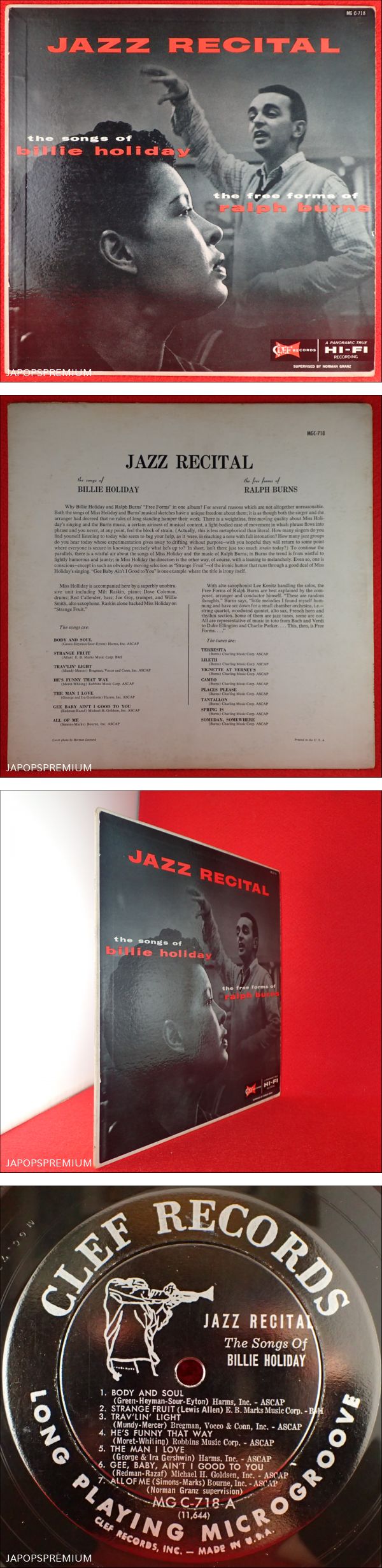 VIP放出★送料無料★神洗浄【宇宙級レア★美品★US完オリ CLEF MONO TP 溝】★BILLIE HOLIDAY/JAZZ CRECITAL★RALPH BURNS★Herman Leonard 收藏