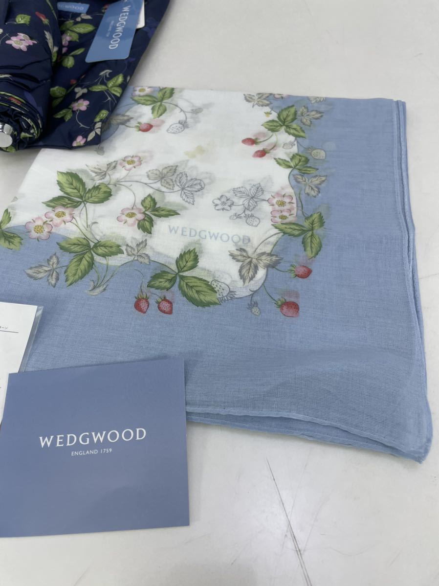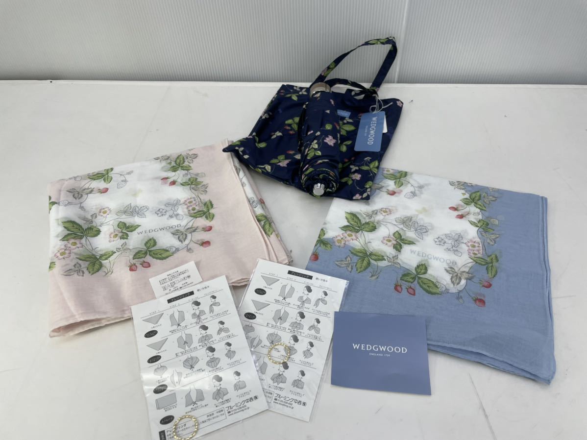 WEDGWOOD ウェッジウッド ワイルドストロベリー スカーフ ピンク/ブルー/リング付き 折り畳み傘 ネイビー 3点セット/定価18,370円 收藏
