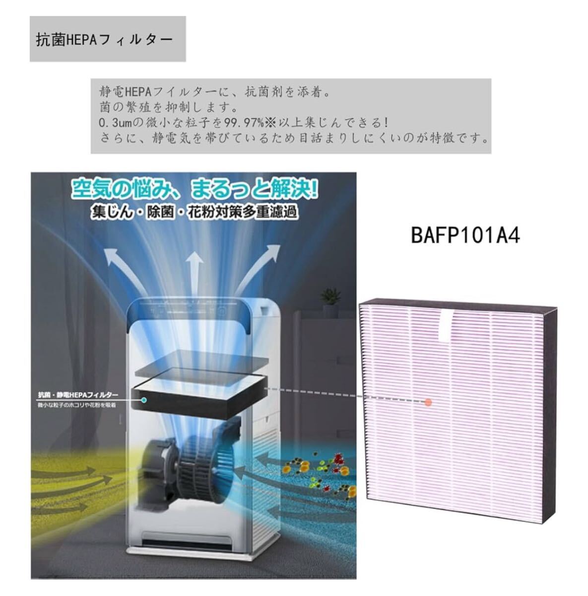 BAFP101A4 空気清浄機フィルター 抗菌HEPAフィルター ACB50X-S ACB50Z-S 対応 集じんフィルター 收藏