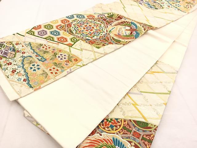 平和屋着物◎六通柄袋帯 唐織 松皮扇 金糸 正絹 逸品 BAAU2517yc 收藏