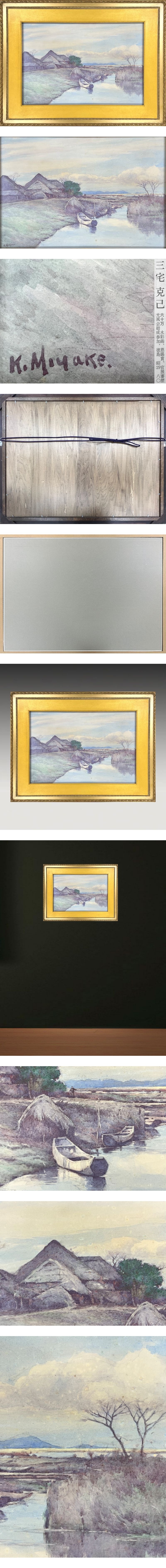 【FCP】 真作保証 三宅克己 肉筆水彩画47.1x68.2cm 「川辺の風景」 大型作品 日本芸術院恩賜賞 光風会結成参加 k 收藏