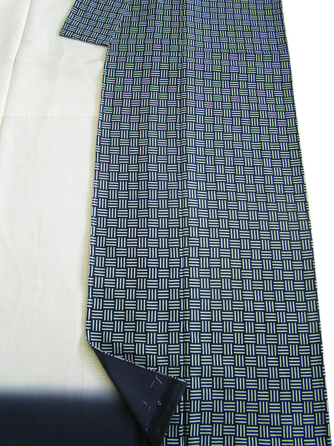 状態 | 仕付け糸付き、未使用ですが、写真の様に八掛の上前、下前の裏に極小さな点シミがあります。 着用には問題ありません。 (手縫い仕立て) |