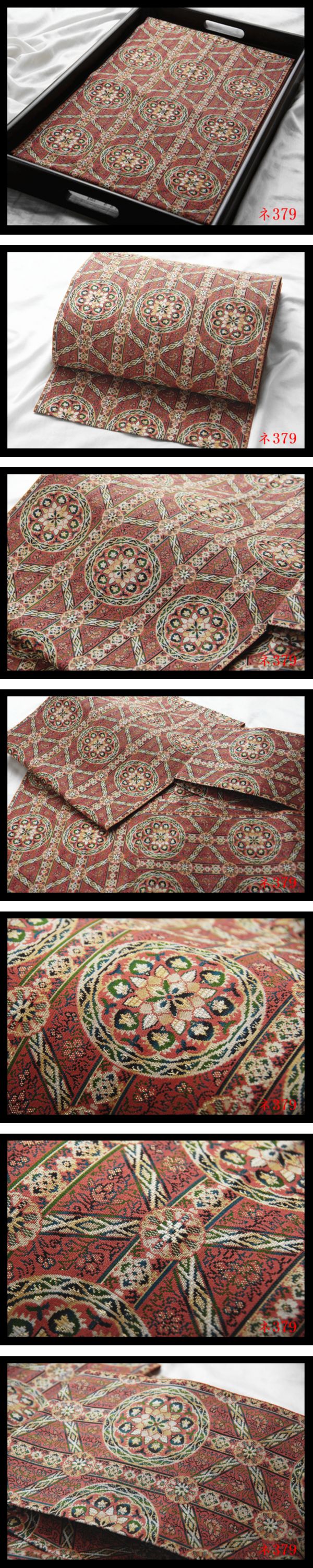 【ネ379】西陣逸品 唐花紋 紅鳶色地 気品豊かに 正絹高級美術名古屋帯 新品同様 ◇検◇簪着物袋帯名古屋帯帯締め 收藏