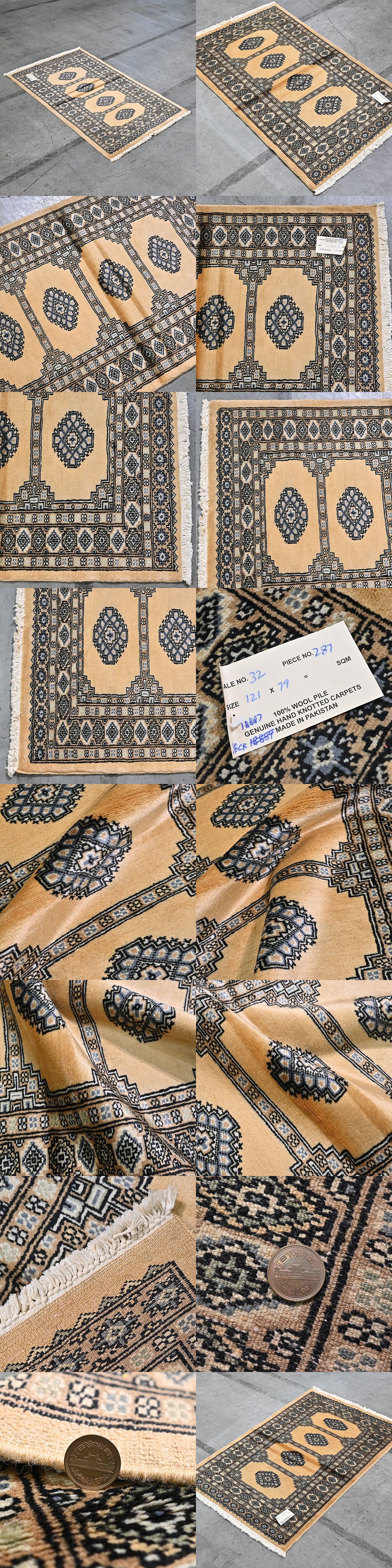 新品 未使用 パキスタン製 手織り ウール絨毯 ラグ ボハラ柄 ギュル文様 ハンドノット 羊毛 カーペット マット ホテル 応接室 P-117 收藏