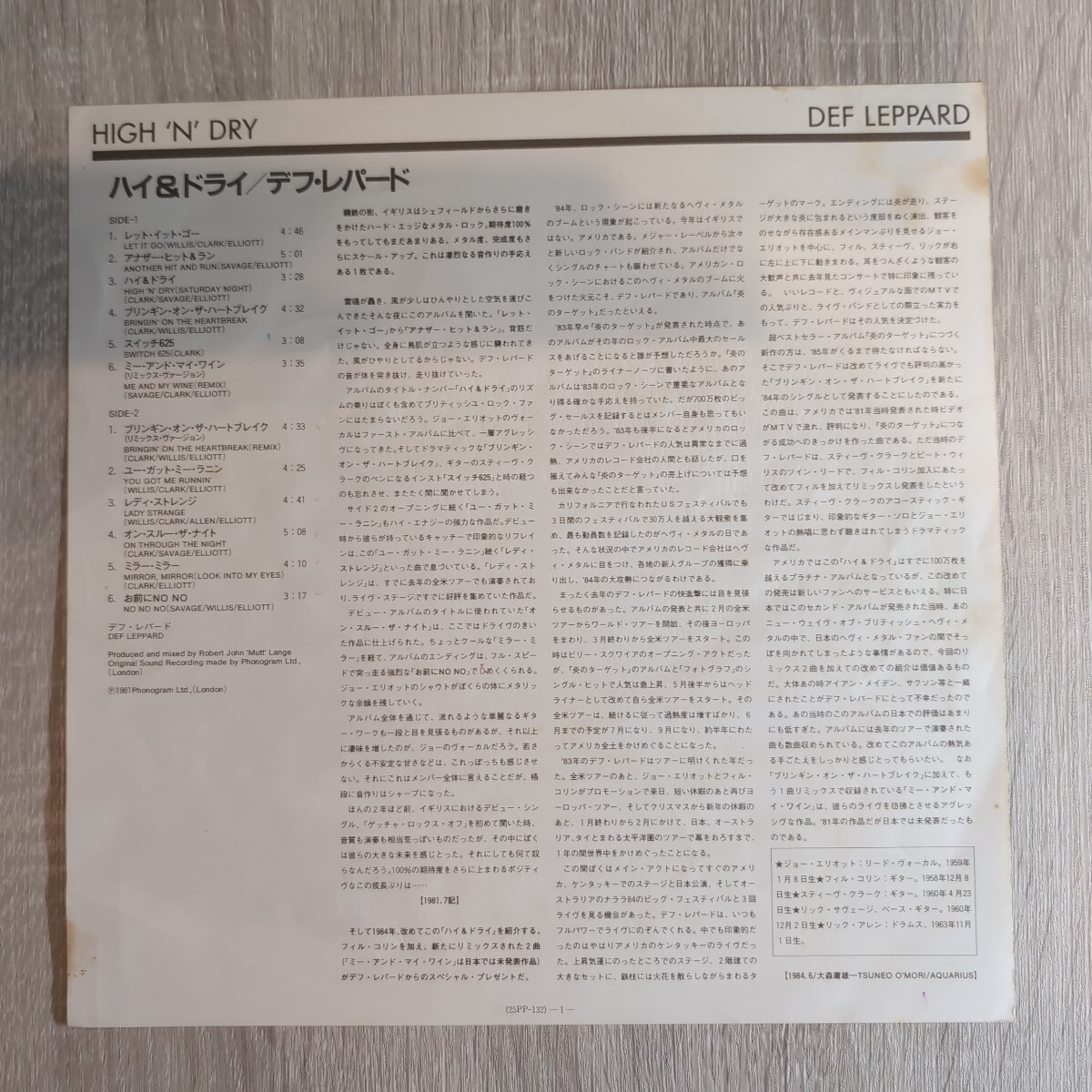 Def Leppard「high n dry」邦LPレコード 1984年版 青帯★★heavy metal hard rock デフレパード 收藏