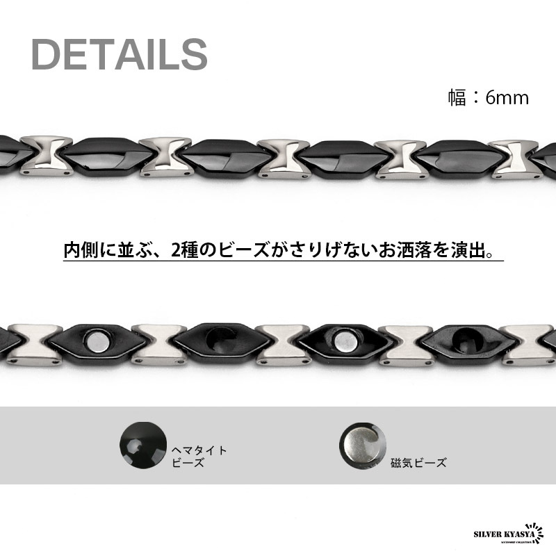 磁気ブレスレット ステンレス セラミック silver black シルバー ブラック 磁力 磁石 男性 金属アレルギー対応 收藏