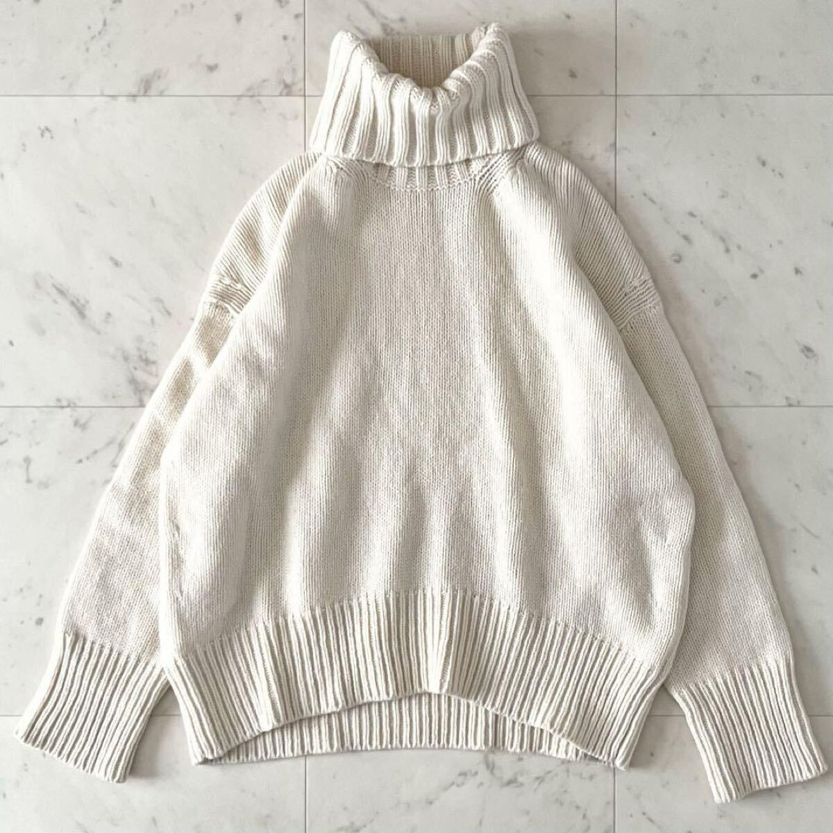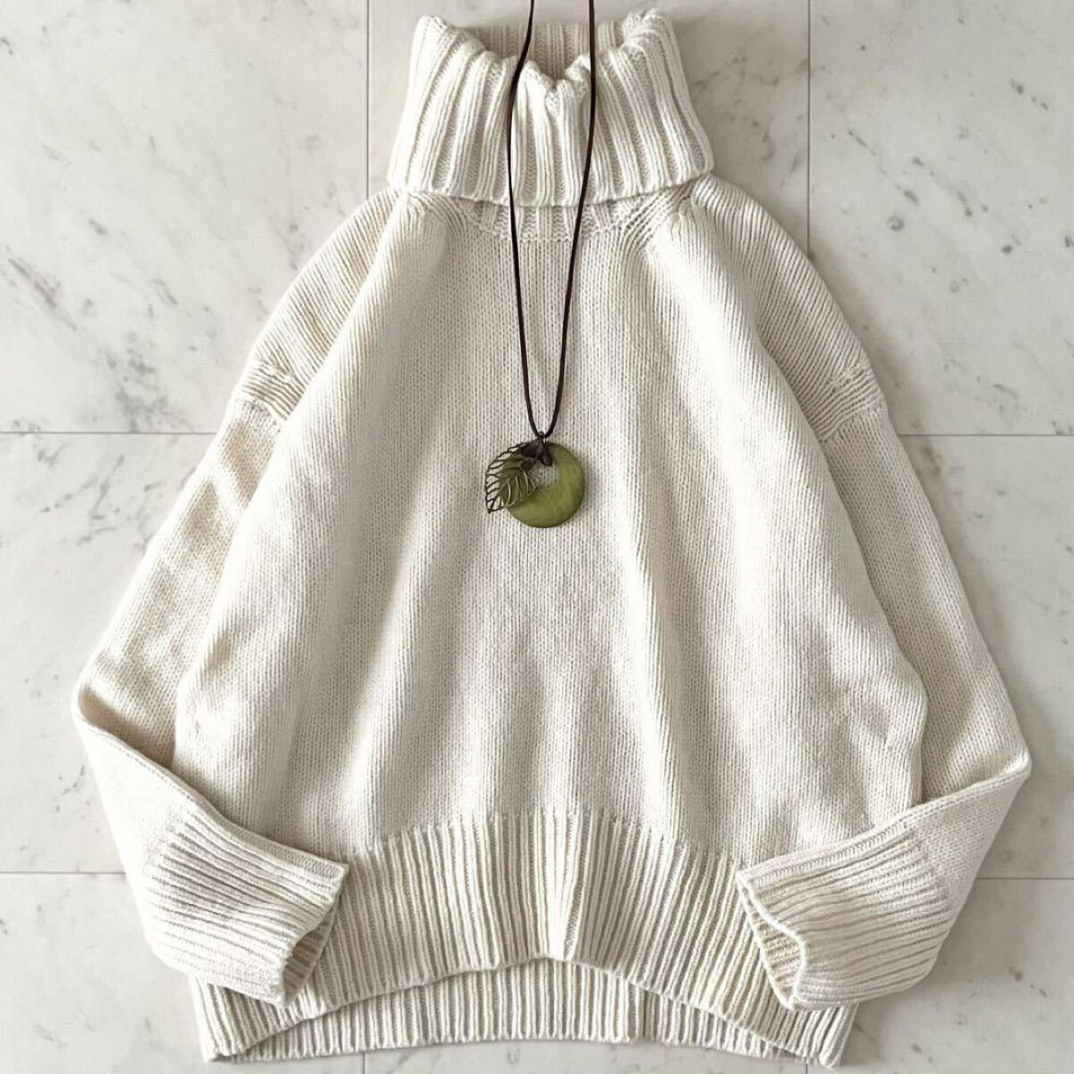 美品*GALERIE VIE ギャルリーヴィー ファインウールハイネックプルオーバー S アイボリー系 長袖 タートルネック ゆったり 日本製トップス 收藏