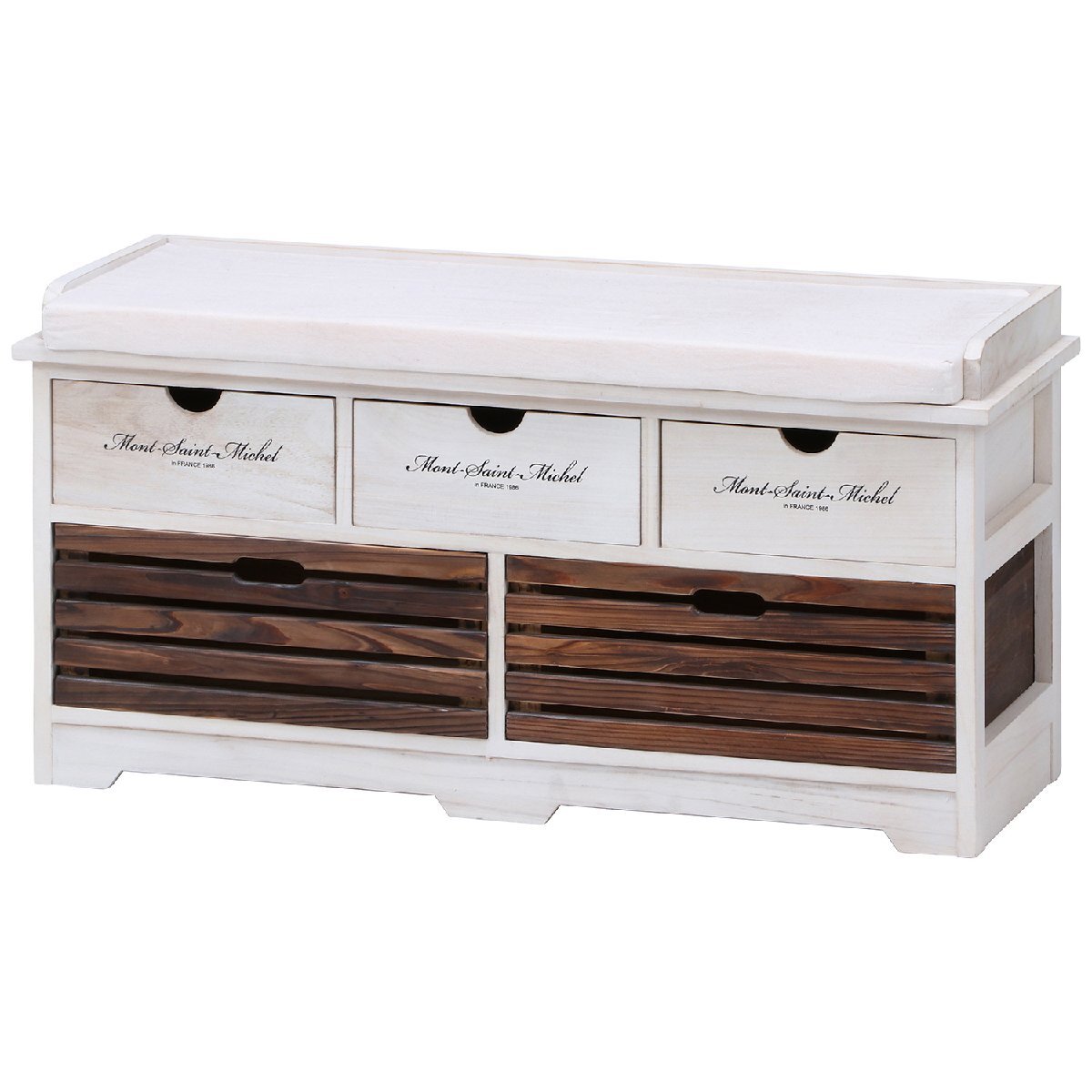 送料無料 天然木 桐製 アンティーク調加工 チェスト カントリー ベンチ 椅子 ダメージ風加工 収納棚 完成品 幅90cm 高さ46cm 耐荷重80kg 新 收藏