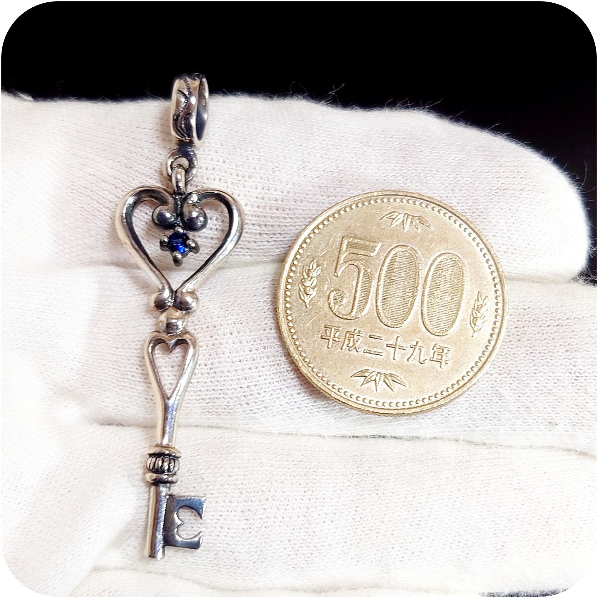 2897 SILVER925 ブルーサファイア ハートキートップ シルバー925 天然石 鍵 key アラベスク トライバル チャーム パーツ ヴィンテージ 收藏