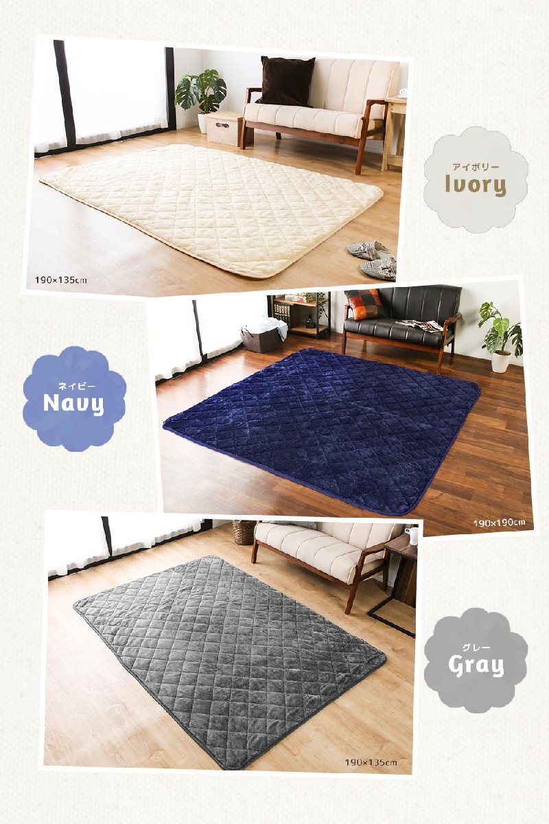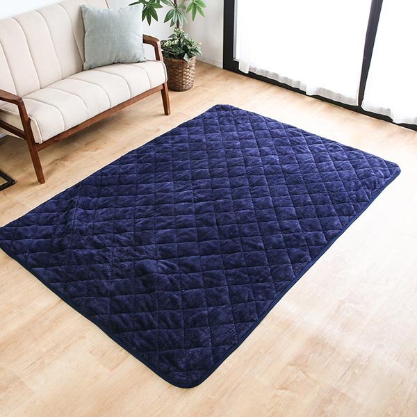 ラグマット ラグカバー ラグ用カバー あったか 135×190cm フランネル生地 保温性 洗える カバー キルト加工 無地 ラグ パッド ネイビー 收藏